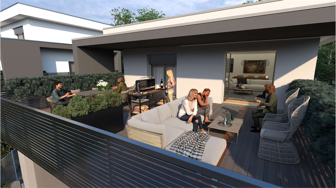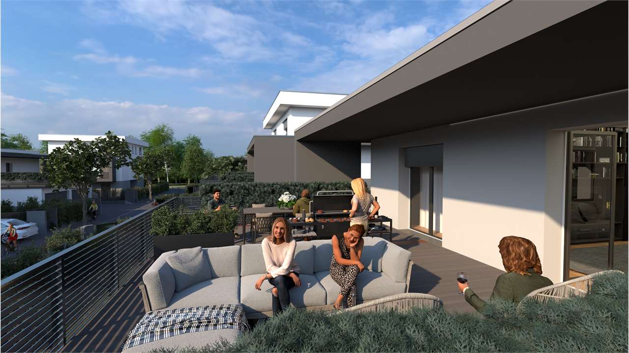 Spazi Esterni Privati: Ogni unità abitativa dispone di spazi esterni privati, come giardini o terrazze, dove potrete godere di momenti di relax e intrattenimento in famiglia o con amici.