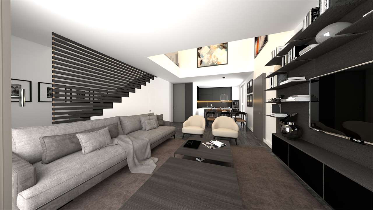 QUADRILOCALE su due livelli posto al piano primo con INGRESSO pedonale AUTONOMO, che consente l’accesso al GIARDINO PRIVATO; tramite propria scala accediamo all’abitazione al piano primo, progettata con uno stile moderno e contemporaneo, che vi offrirà comfort e funzionalità senza rinunciare all’eleganza.