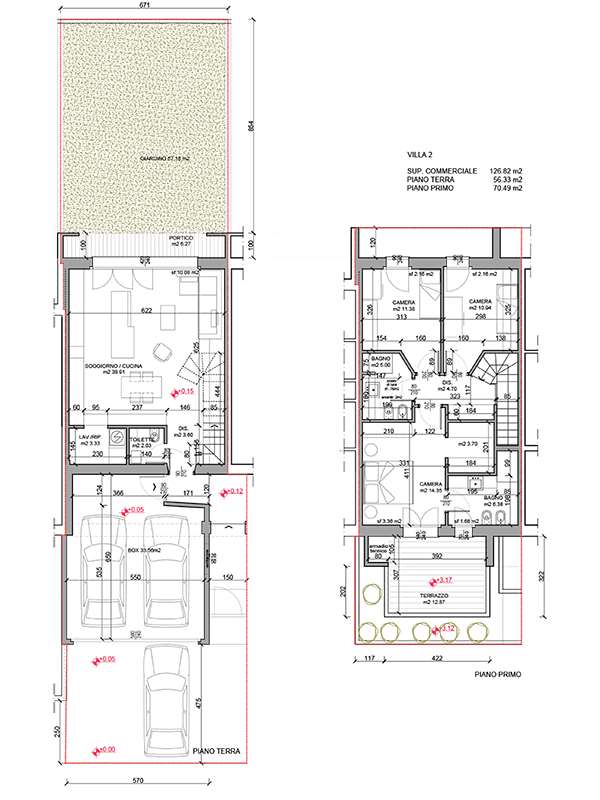 Composizione : VILLA su due livelli, terra e primo, composta al piano terreno da ampia ZONA LIVING openspace con uscita diretta sul GIARDINO retrostante, BAGNO di servizio e LAVANDERIA, proseguendo al piano primo si trovano 3 comode CAMERE da LETTO, e 2 BAGNI, di cui uno pertinenziale alla camera matrimoniale, dotata di CABINA ARMADIO e TERRAZZO; completano la proprietà l’AUTORIMESSA la piano terra per il ricovero di 2 macchine affiancate e la possibilità di parcheggio davanti alla propria basculante.